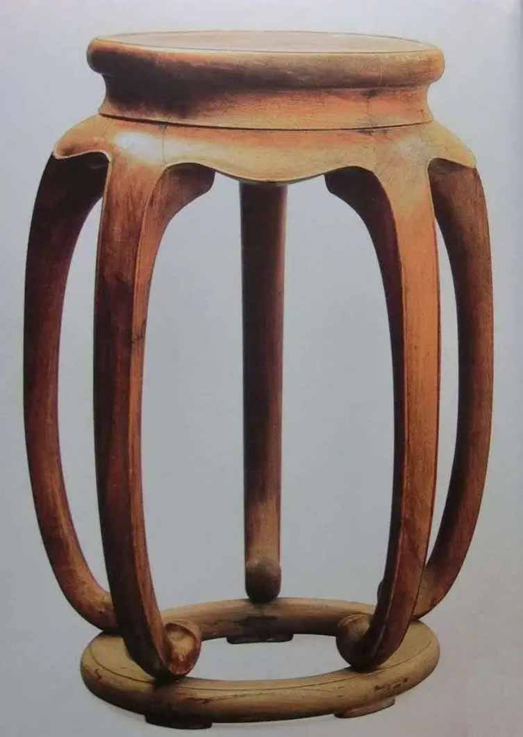 圆形结体的家具如香几、圆凳等,底部的托泥是用嵌夹榫舌或用楔钉榫的做法,把弧形弯材攒接到一起的。